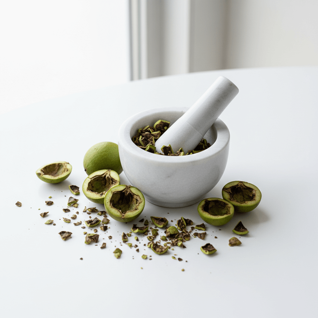 “Green” Black Walnut Wormwood Complex is an herbal formulation that combines three traditional herbal extracts in one convenient liquid supplement. This product is manufactured with extracts of unripe (green) black walnut hulls (Juglans nigra), wormwood (Artemisia absinthium) and clove buds (Syzgium aromaticum).